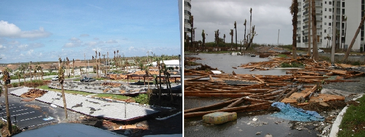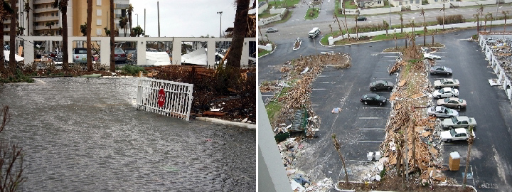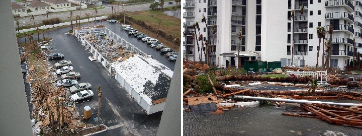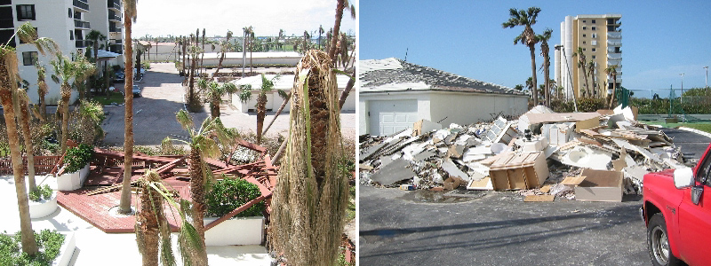 Then, as if that wasn't bad enough, mother nature did something which had never been seen before. It came back three weeks later with a second punch, almost as if it were delivering the knockout punch, with a storm of equal intensity and size. Hurricane Jeanne was headed out to sea when it made an abrupt aboutface and hit South Hutchinson Island again at midnight on September 26th, 2004 near the House of Refuge as a Category 3. Reported wind gusts this time were 106 mph in Vero Beach, 102 mph in Sebastian and 104 mph in Lake Okeechobee with ocean wave conditions cresting at thirteen feet. Storm tracking charts show the two storms made landfall at almost the same location and with the same intensity. This had never happened before and Tiara Towers Condominium, along with the Treasure Coast of Florida, were the unfortunate recipients of this horrible anomaly in weather history.